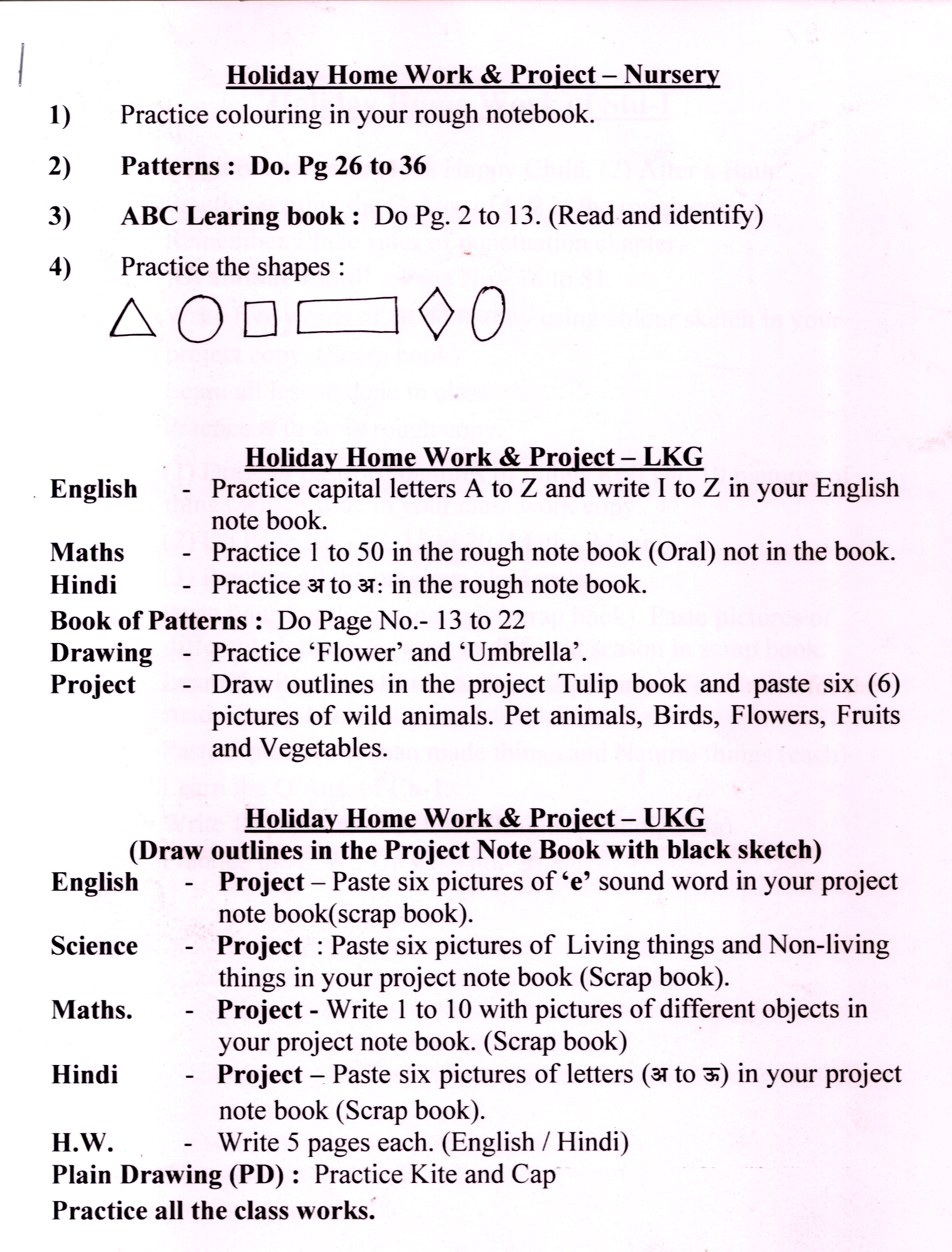 HOLIDAY HOMEWORK OF NUR,L.K.G & U.K.G (2019-20)