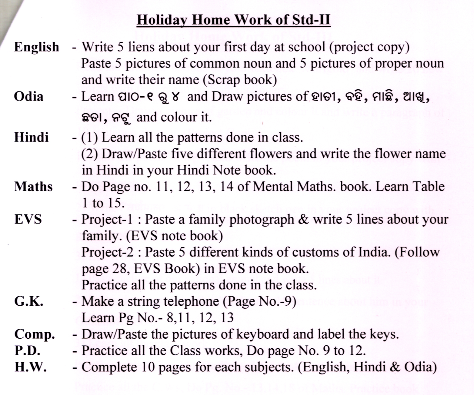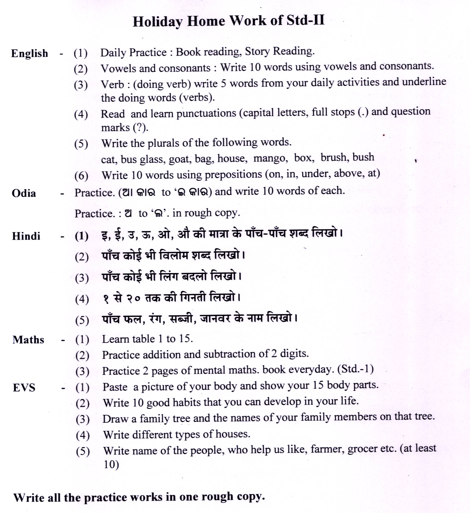 HOLIDAY HOMEWORK OF STD-2 (2019-20)
