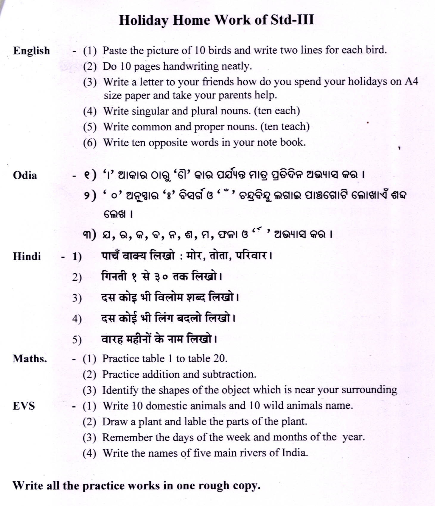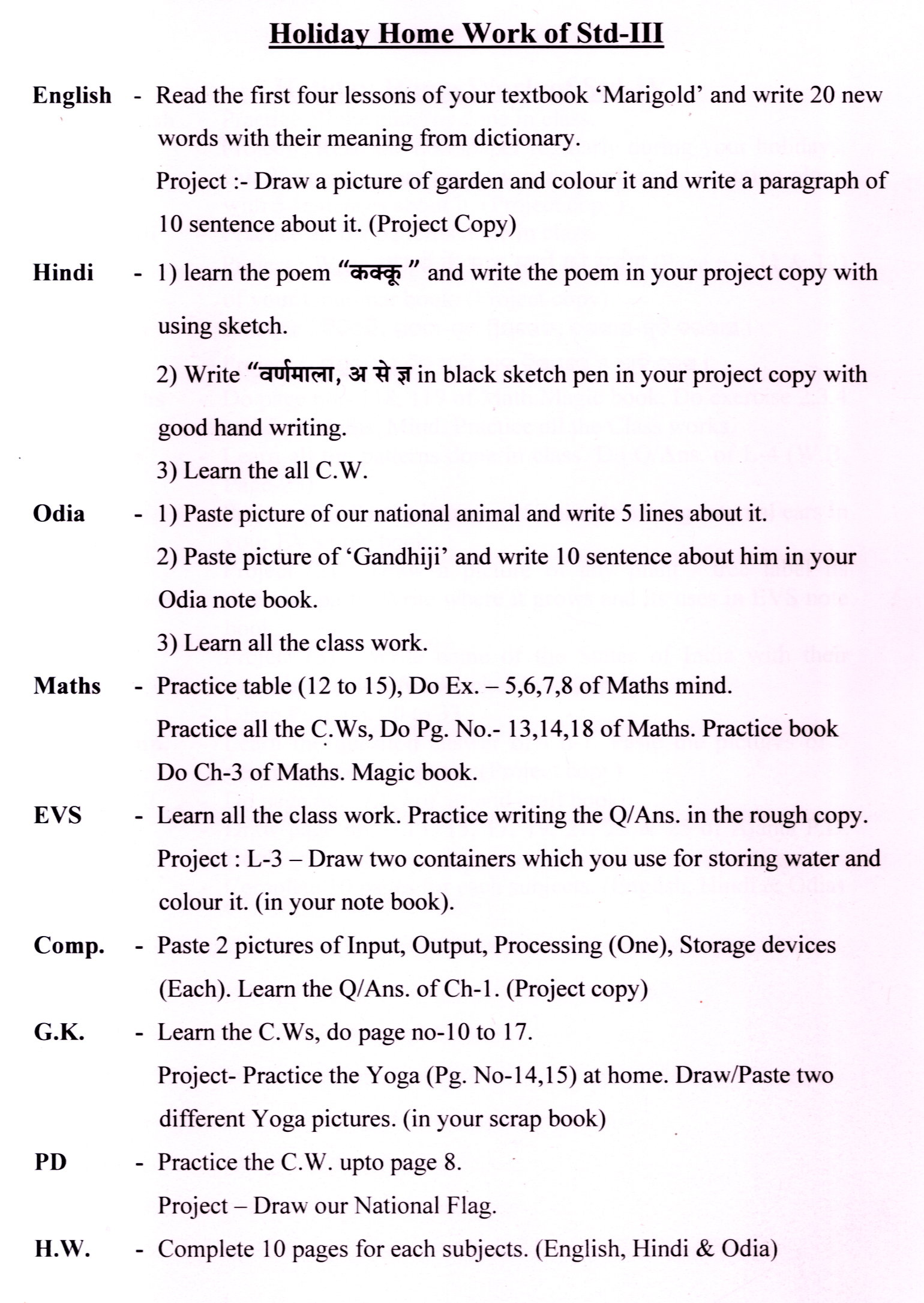HOLIDAY HOMEWORK OF STD-3 (2019-20)