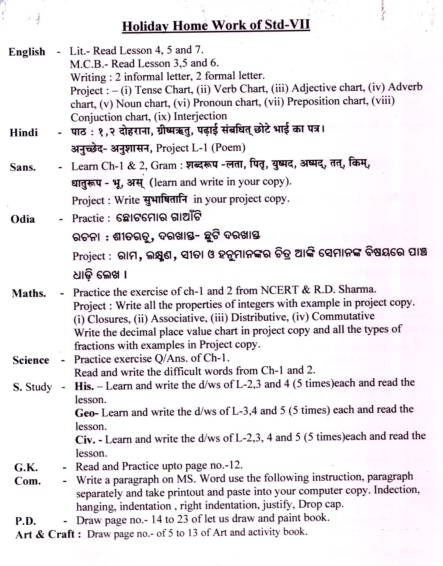 HOLIDAY HOMEWORK OF STD-7 (2019-20)